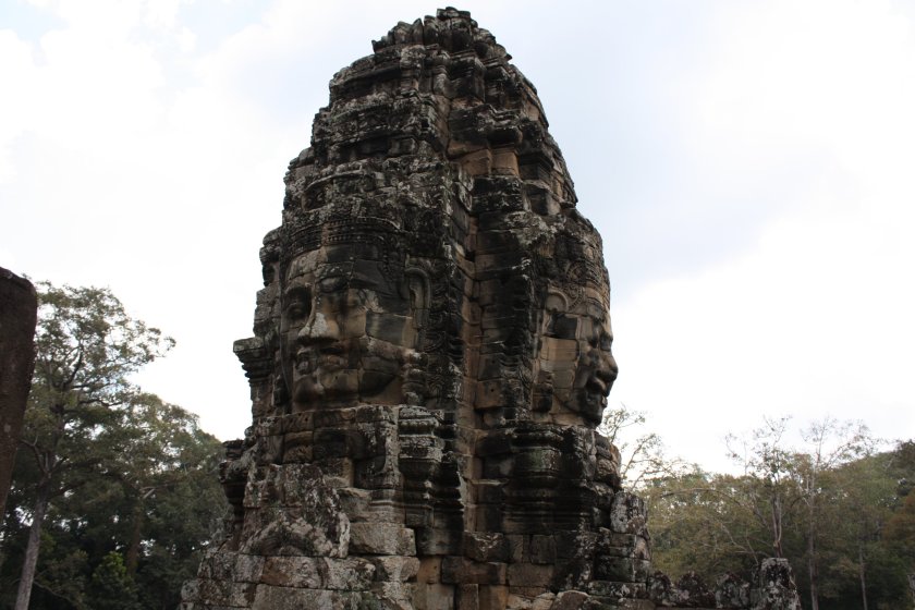 Ziemlich erschöpft ging es zum Schluss noch zum Bayon, einer eindrucksvollen Tempelanlage mit meterhohen, aus Stein gemeißelten Gesichtern: