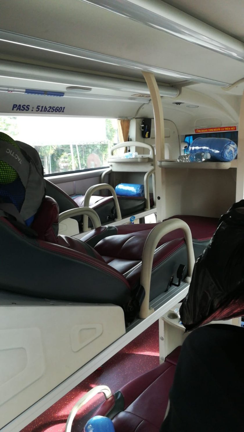 Nach schönen 3-4 Wochen in Kambodscha geht für die Reise weiter ins nächste Land, nach Vietnam. Doch es gab ein Problem: Joanas E-Visum war nach 8 Tagen immer noch nicht angekommen ( meins war nach 12 Stunden bereit zum ausdrucken) und der Service hat auf Anfragen auch nicht geantwortet. Zum Glück sind wir deutsche Staatsbürger und können 15 Tage visafrei in Vietnam einreisen und das auch noch kostenlos, was Joana dann auch in Anspruch genommen hat. Jetzt gab es für uns 2 Möglichkeiten: entweder wir bleiben nur 2 Wochen in Vietnam, buchen unseren Flug um, den wir im Voraus gebucht haben und bereisen Vietnam mit Bus und Zug oder wir hoffen, dass Joanas E-Visum noch ankommt und wir das bei der Einwanderungsbehörde in Ho-Chi-Minh noch ändern können. Aber erstmal hieß es Busfahren! Insgesamt waren wir knapp 14 Stunden unterwegs, von Kampot bis nach Ho-Chi-Minh, mussten 4 mal umsteigen, oft warten, ohne zu wissen wann und wie es weiter geht. Letztendlich fuhren wir von Ha Tien, einem Ort knapp hinter der vietnamesischen Grenze mit einem mehr oder weniger gemütlichen Sleeping Bus bis wir das Ziel nach 9 Stunden Fahrt erreichten.