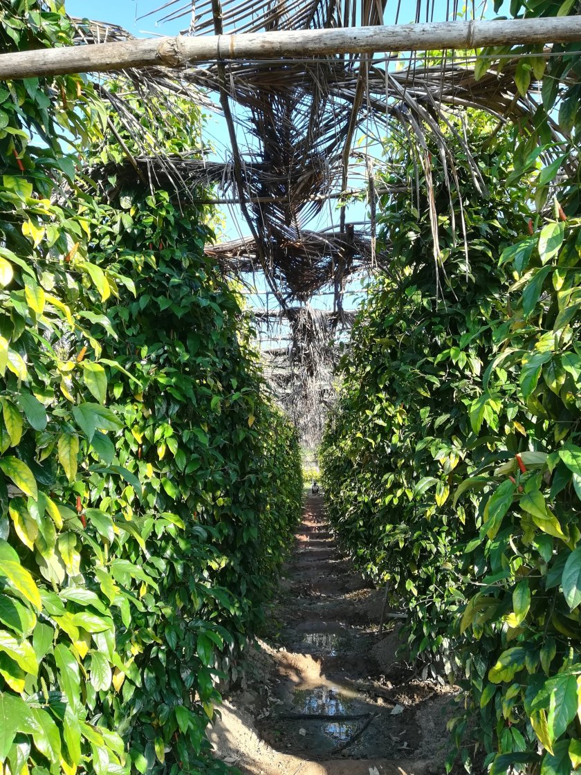 Mit dem Roller ging es dann noch weiter auf eine Pfefferplantage, wo wir eine kostenlose Führung mitmachten. Der Guide führte uns durch die Plantagen, erzählte uns etwas über die Geschichte und den Anbau des bekannten Kampot-Pfeffers.